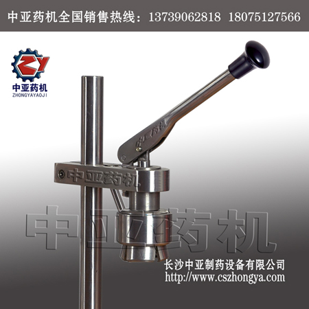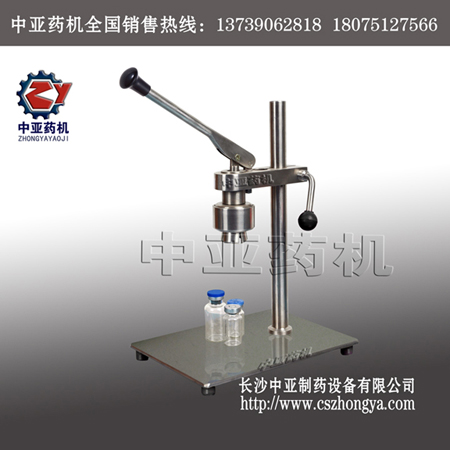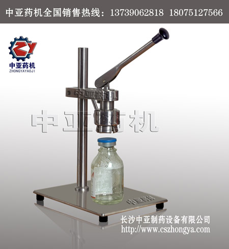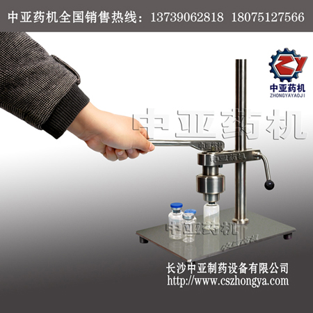 臺式手動軋蓋機是長沙中亞制藥設備有限公司吸取了國內外同類產品的優點和技術,反復改進而成。也叫臺式手動壓蓋機,西林瓶手動軋蓋機,抗生素瓶壓蓋器,輸液瓶軋蓋機,臺式手動軋蓋機采用全不銹鋼鑄造而成,機身美觀小巧運用靈活,深受用戶的喜愛。是國內外廣大藥廠、科研院所、實驗室、醫院藥劑科等為小批量分裝各種藥液所必需的鋁塑組合蓋和鋁蓋的軋蓋工具。特別是各大藥廠或制劑室正在生產中藥、西藥、生物制品、各種藥液、凍干粉針和化妝品等,突然發生停電或其它電動軋蓋設備故障而束手無策時,使用臺式手動軋蓋機替代使用,從而確保生產正常進行。